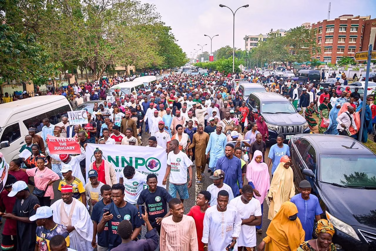 ADC Coalition Protests Against INEC in Abuja in Pictures 2027 ElectionsPOLITICS By Moses Idika On Apr 8, 2026 8,102 0 ADCAtiku AbubakarPeter ObiRabiu Musa Kwankwaso 0 8,102 Share