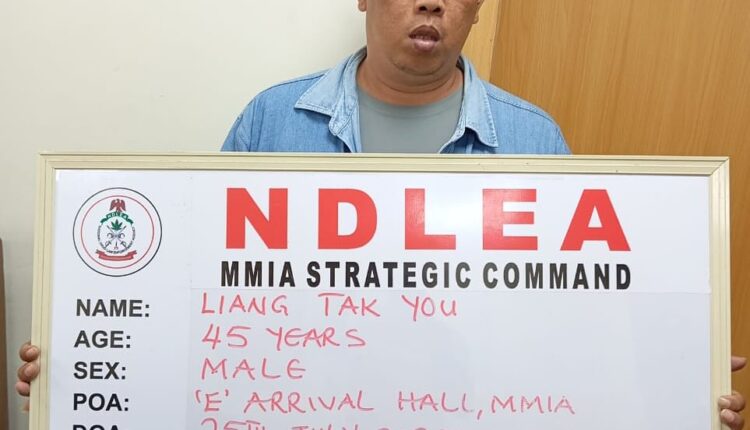 Liang was arrested by NDLEA operatives at the arrival hall of the Murtala Muhammed International Airport, MMIA, Ikeja Lagos on Friday 25th July 2025 based on actionable intelligence. The suspect, who arrived Nigeria from Bangkok via Dubai, UAE, on Emirates Airline flight, is a Chinese national, naturalised and based in Malaysia, but flew to Thailand where he picked two suitcases filled with 50 parcels of Loud weighing 26.10kg before heading to Nigeria via UAE.