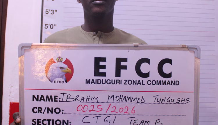 In another development, The Maiduguri Zonal Directorate of the Economic and Financial Crimes Commission, EFCC on Thursday, April 2, 2026 arraigned one Ibrahim Mohammed Tungushe before Justice Aisha Kumaliya of the Borno State High Court, Maiduguri.