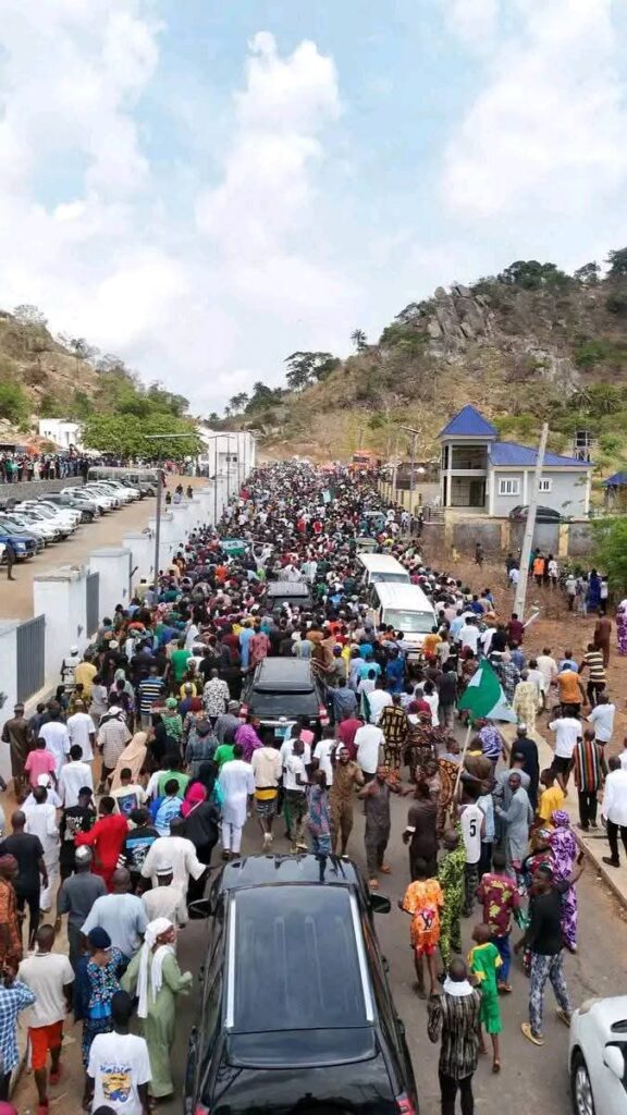 The defiant Senator Natasha Akpoti-Uduaghan stormed her constituency, Kogi Central Senatorial District in grandstyle to a rousing welcome by mammoth crowd.