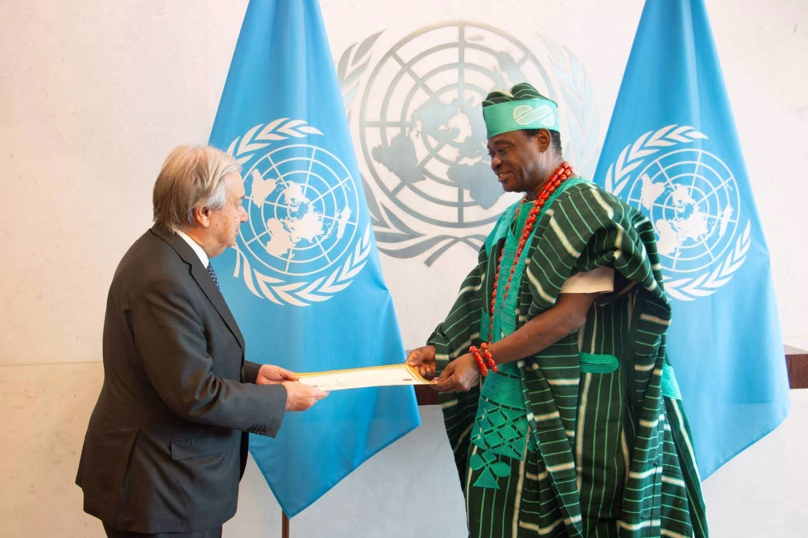 Senator Jimoh Ibrahim, on Monday April 20, 2026 formally presented his letter of credence to United Nations Secretary General António Guterres, officially accrediting him as the Permanent Representative Extraordinary and Plenipotentiary of the Federal Republic of Nigeria to the UN, at the UN Secretariat in New York.