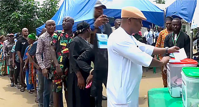 In his Ward 5 polling unit, Opobo in Opobo/Nkoro LGA Governor Fubara was absent even when all arrangements were already made in expectation of the suspended governor to cast his vote. It only became apperant that he was not going to come by 3.30pm when electoral officials announced conclusion of the election. Other prominent members of Governor Fubara’s cabinet including the Chief of Staff, Government House, Rt. Hon. Edison Ogerenye Ehie, the Secretary to the Government, Dr Tammy Danagogo and other senior officials were also not seen at their various polling units.