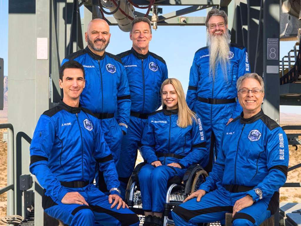 Ms Benthaus and five others blasted off from Texas on Saturday and reached a point just above the so-called “boundary” of space, known as the Kármán line