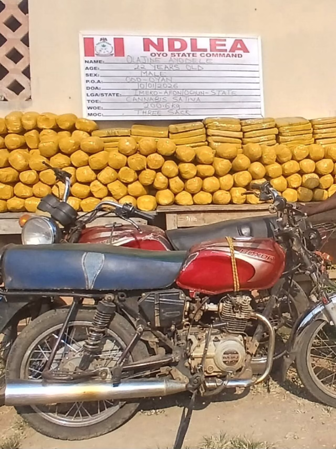 In Oyo state, raids across different locations led to the seizure of dangerous illicit drugs and arrest of notorious dealers, including 45-year-old Remi Bamidele (Alias ‘Aluko the Mafia’) at Sasa, Ibadan, where a total of 10.696 kilograms of Colorado, Scottish Loud, Ghana Loud, Canadian Loud and skunk, all strains of cannabis. At the time of his arrest on Thursday 8th January, two vehicles: Toyota Venza and Toyota Yaris marked HG 06 LYD were recovered from him.