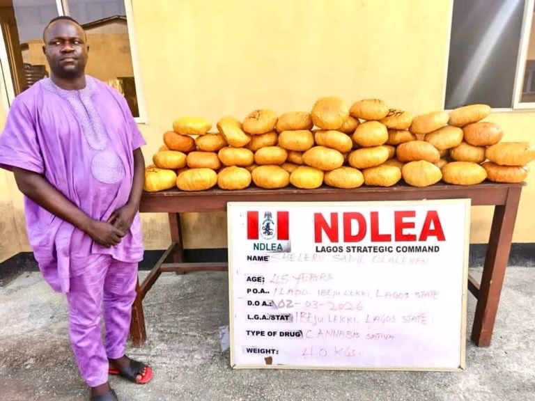 The 45-year-old ex-local council chief who currently serves as a legislative aide was arrested on Monday 2nd March 2026 at his residence in Ilado, Ibeju-Lekki Lagos where a search was conducted and 40 kilograms of skunk, a strain of cannabis, were recovered from one of his rooms.