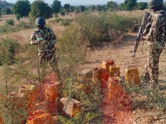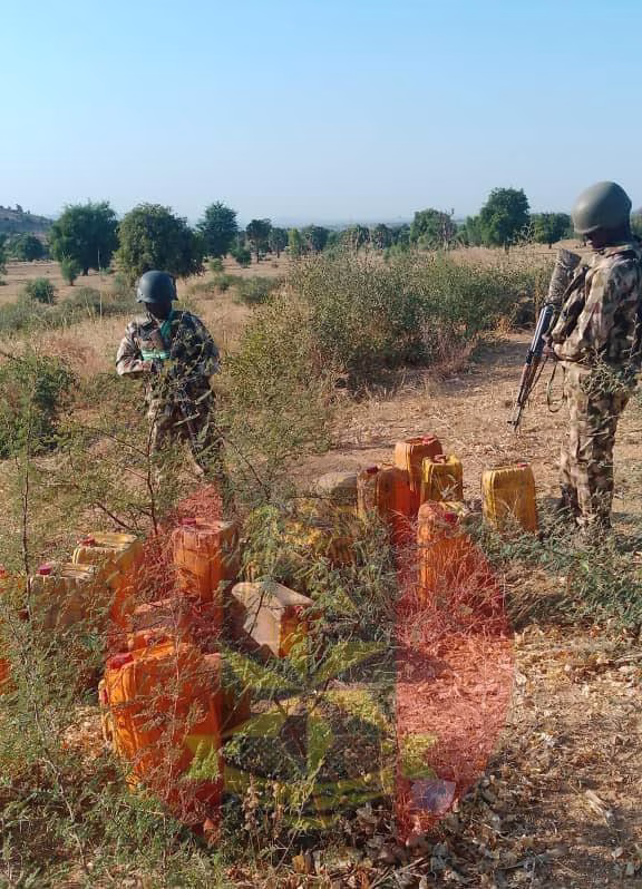 In a related development, OPHK troops intercepted a large consignment of suspected terrorists’ logistics in Mayo Nguli, Maiha Local Government Area of Adamawa State on 4 January 2026. The troops seized 45 jerrycans of Premium Motor Spirit (PMS), with a total volume of approximately 1,125 litres, suspected to have been smuggled for terrorist use.