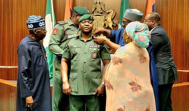 President Bola Tinubu, on Thursday at the Presidential Villa decorated his Aide-de-Camp (ADC), Col Nurudeen Alowonle Yusuf with his new rank.