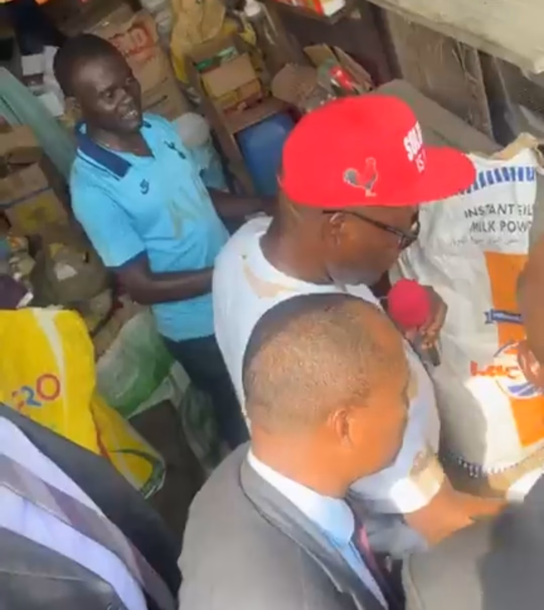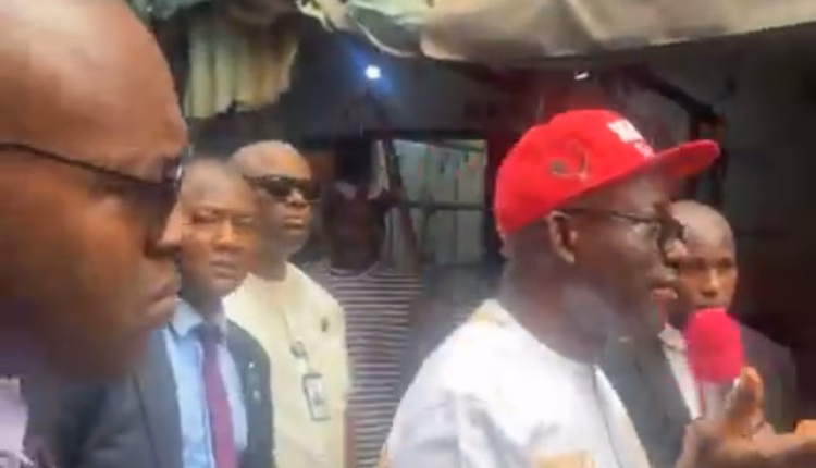 The governor is seen as he visited several sections of the market to share the joyous moments with the traders who have lost billions in revenue as a result of the Momday sit-at-home.