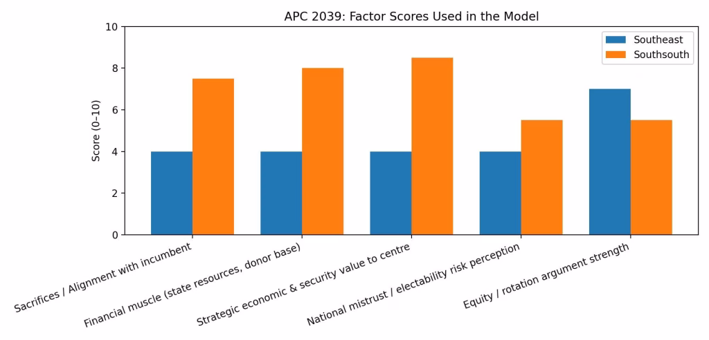 When these factors are weighted objectively—as shown in the accompanying graphic analysis—the probability of the APC nominating a Southsouth presidential candidate in 2039 far outweighs that of the Southeast.