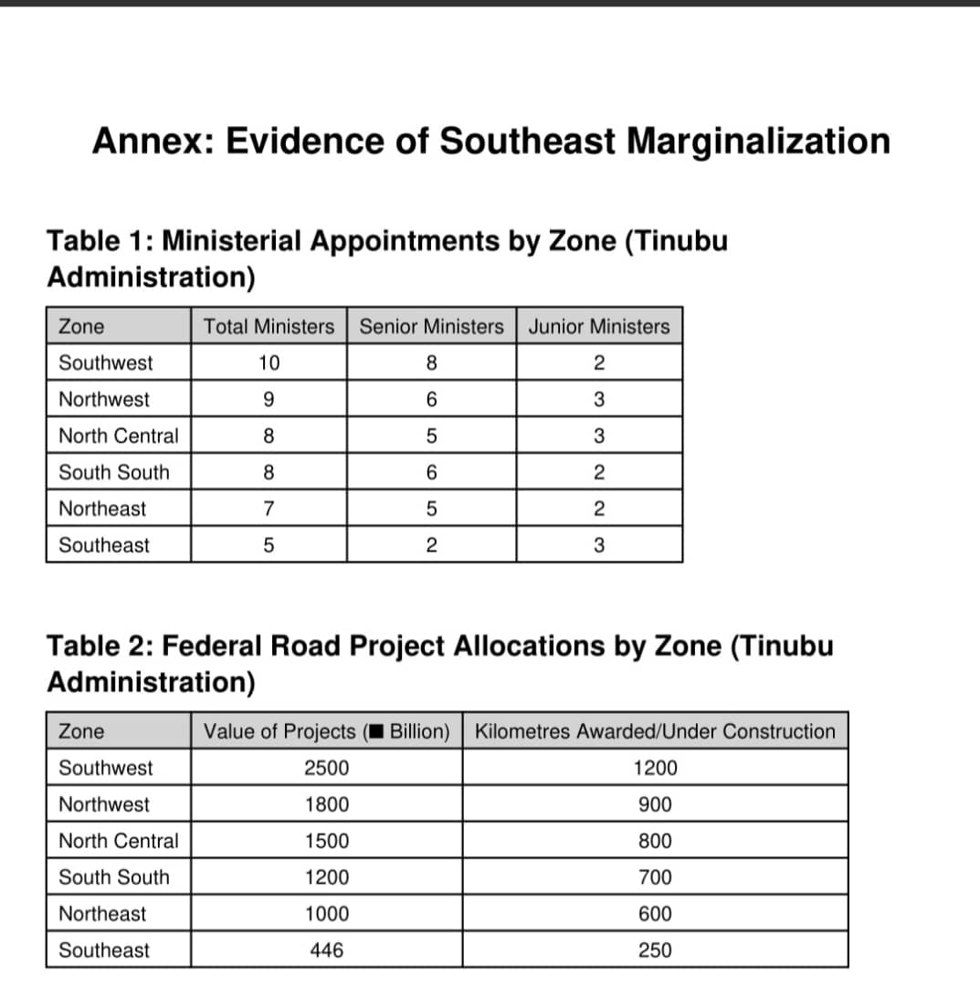 The pattern of appointments and federal project allocations under President Bola Ahmed Tinubu has once again highlighted the stark marginalization of the Southeast in Nigeria’s governance structure.
