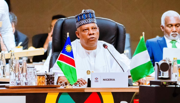VP Shettima Leads Nigeria Delegation to G20 Summit in Johannesburg [PICTURES] INTERNATIONALWORLD By Moses Idika On Nov 23, 2025 9,219 0 Cyril RamaphosaG20 Leaders' SummitSenator Kashim ShettimaSouth Africa 0 9,219 Share