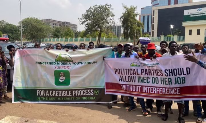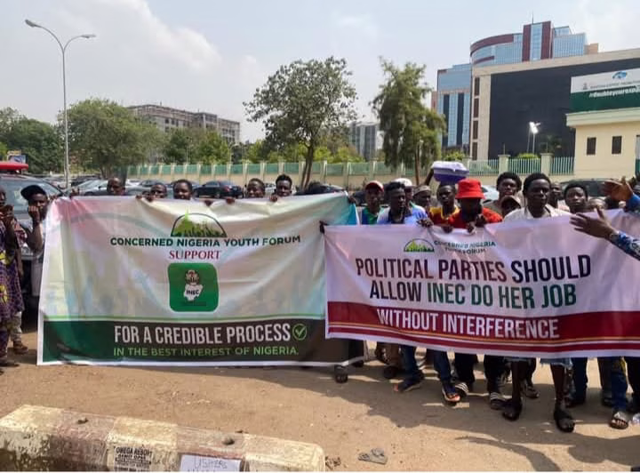 Members of the Concerned Nigeria Youth Forum on Tuesday staged a peaceful march in Abuja in a show of solidarity with the Independent National Electoral Commission (INEC), following growing controversy surrounding the leadership of the African Democratic Congress (ADC).
